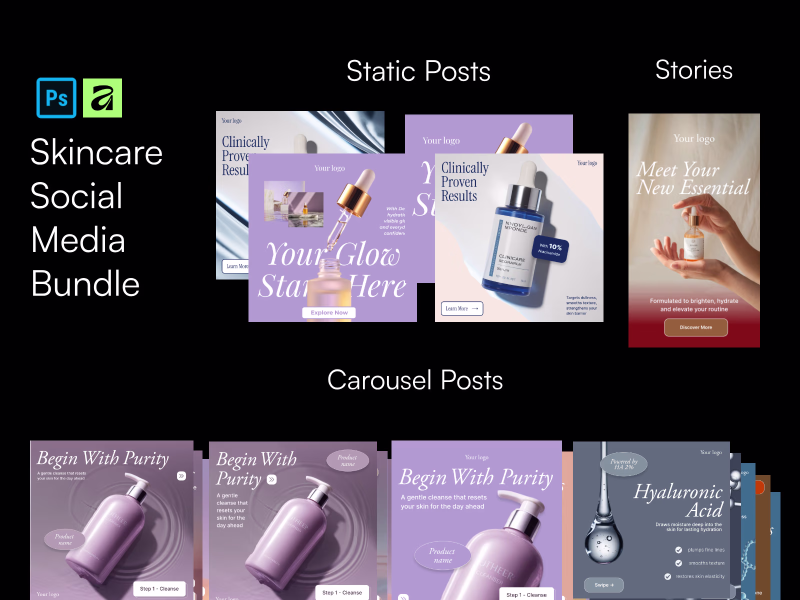 Skincare Social Media Bundle (Static, Carousel & Story)