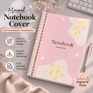 This minimal abstract A4 notebook cover is designed to give your notes, journals, or digital planners a polished and stylish look — without any complexity.The ProblemMost notebook covers are: Too cluttered or overly designed Hard to customize Not suitable for both digital & print use The SolutionThis template gives you a simple, elegant, and fully editable notebook cover that you can personalize in minutes using Canva.No design skills needed.Who Is This For? Students who want organized, aesthetic notes Freelancers & professionals Digital planner users (iPad / tablet) Anyone who loves clean, minimal design Benefits (What You Get)✔ Create a professional-looking notebook instantly✔ Save time — no need to design from scratch✔ Fully customizable (name, title, colors)✔ Works for both digital use & printing✔ Clean design that improves focusWhat You’ll Receive A4 Notebook Cover Template Canva Editable File (easy to customize) Instant Digital Download How It Works Purchase the product Get instant access link Open in Canva Edit text (name, title, etc.) Download & use digitally or print Important This is a digital product only No physical item will be shipped Personal use only Why This Product?Simple sells.If you want a clean, distraction-free notebook cover that actually looks good and saves your time this is for you.