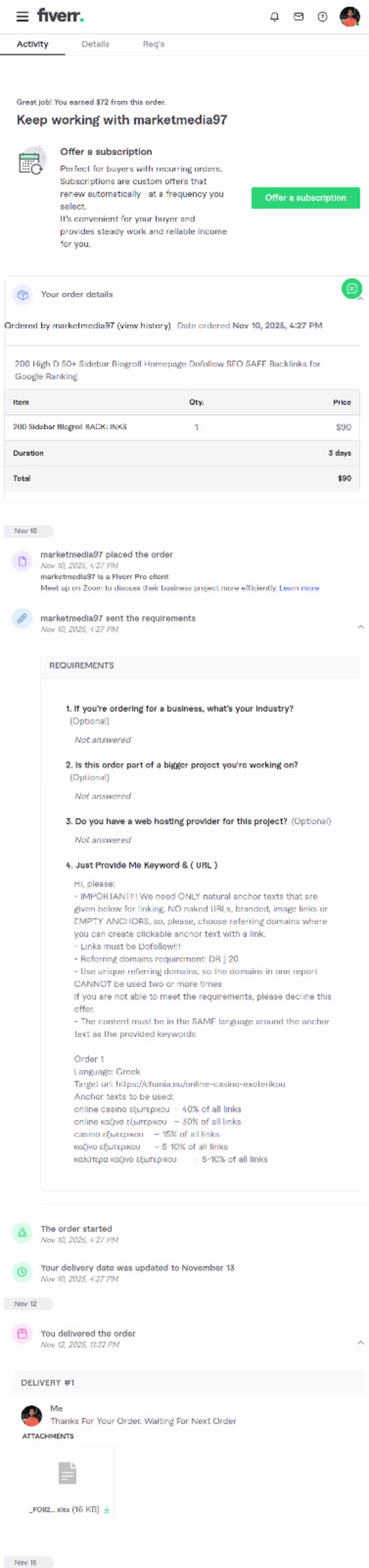 Cover image for Completed a Fiverr order delivering