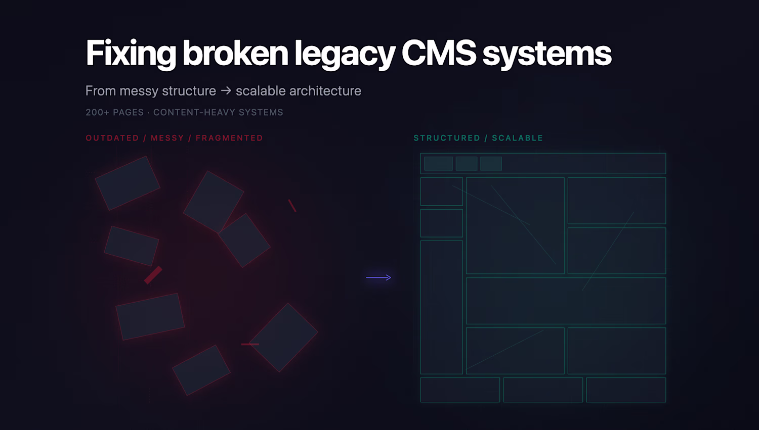 Rebuilding a 200+ page government CMS (XSL-based) from the ground up — integrating p5.js, restructuring templates, and creating a system where content can be pasted from Word and auto-formatted in the new design.