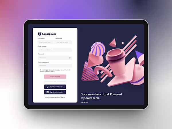 A modern and user-friendly sign up page concept designed with a focus on clarity, simplicity, and accessibility.