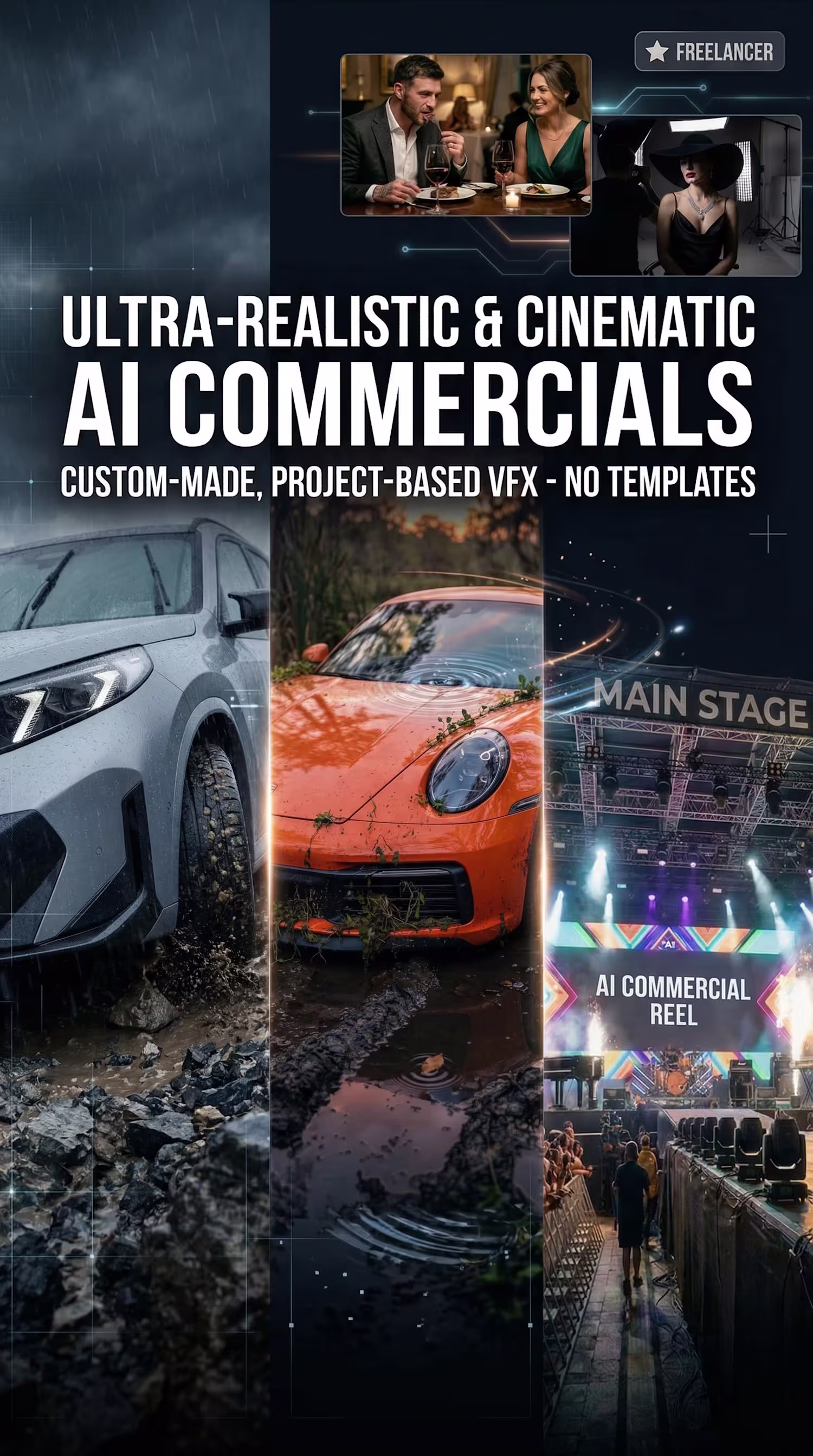 The project was designed as a proof of concept for how AI can be used to produce high-end cinematic commercials without traditional film production.Creative direction focused on: cinematic composition,atmospheric lighting and reflections, classic film-style pacing