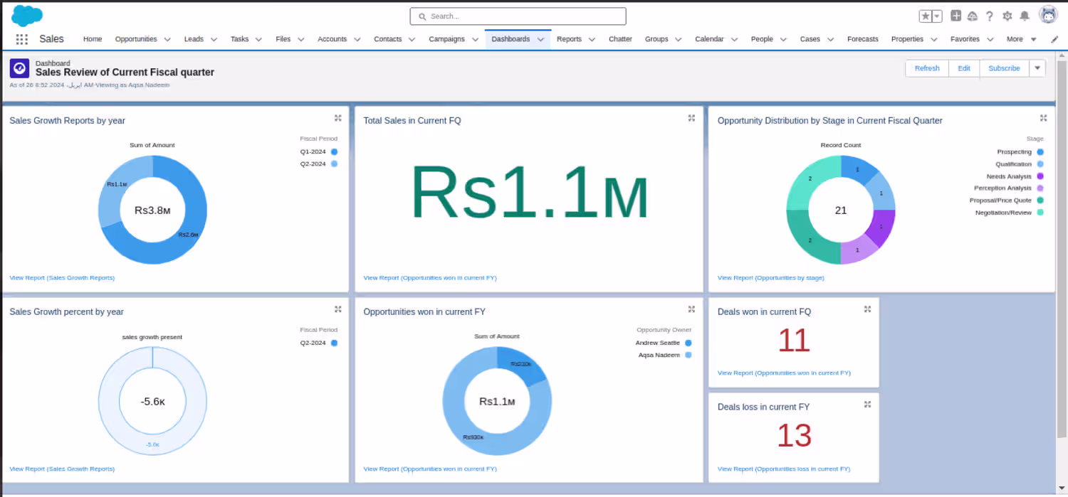 Current FQ Sales Dashboard Review