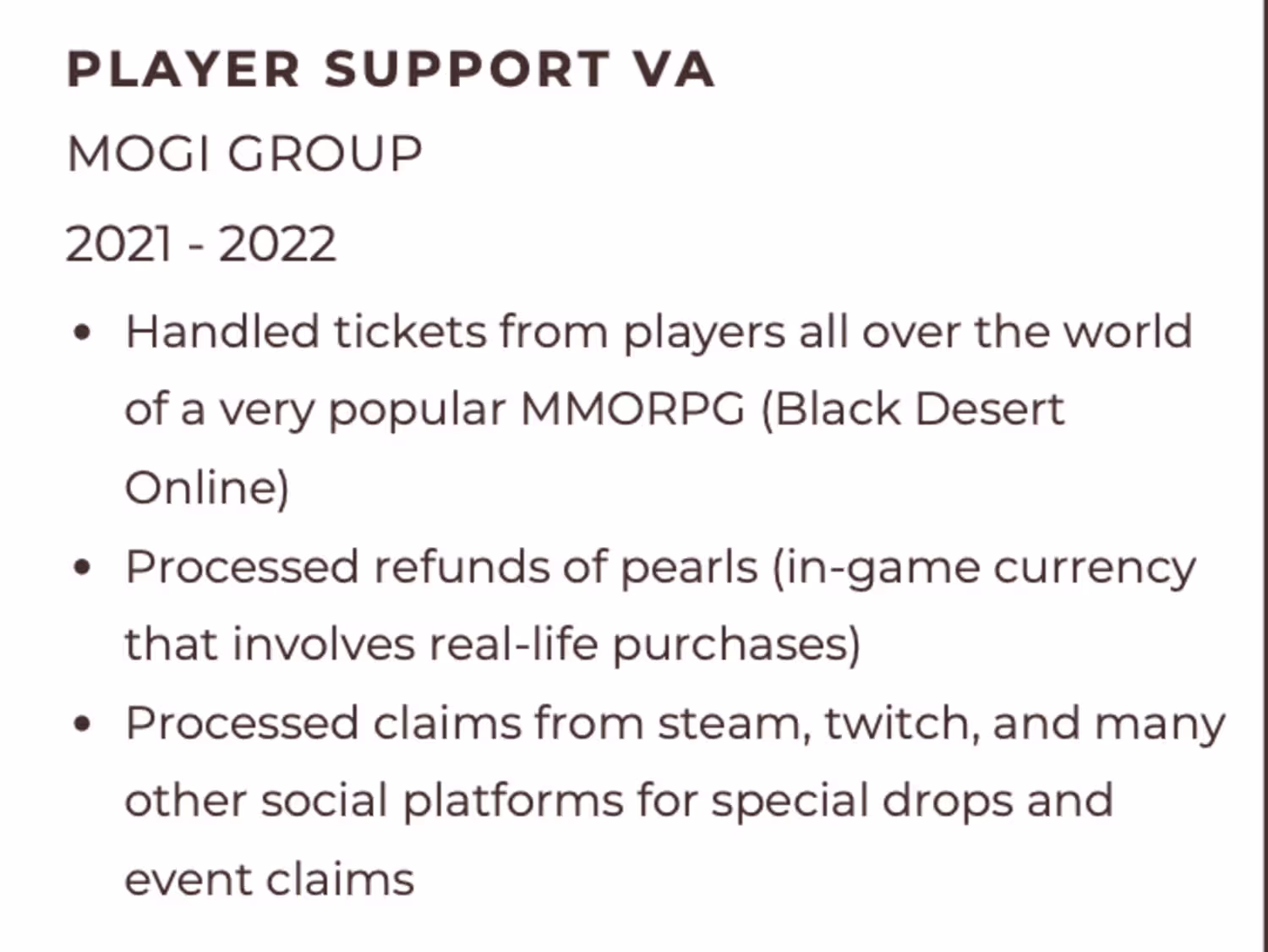 Player Support VA