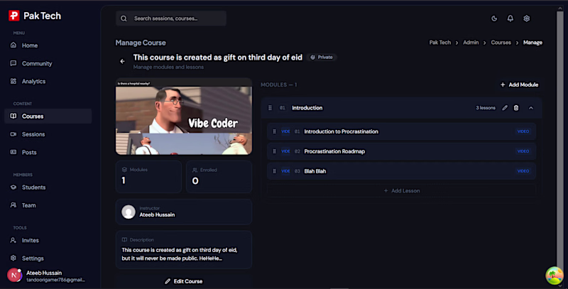 I’m building an LMS SaaS named eCourses — open‑source, community‑first, and designed to run cheap. Instead of hiding it in private repos, I’m shipping it in public: sharing code structure, architecture decisions, and failures on