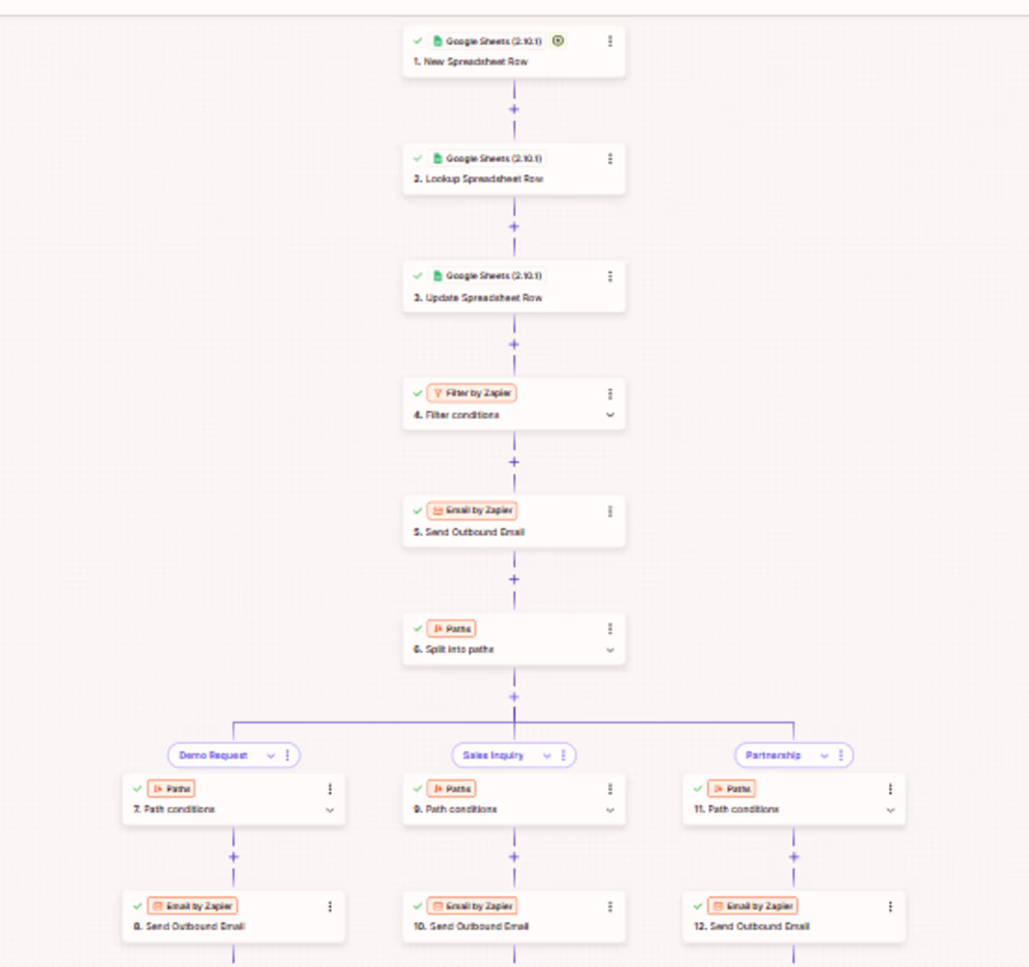 Built an automation workflow using Google Forms, Google Sheets, and Zapier to capture incoming requests, organize them in a tracking system, categorize them by type and priority, and automatically send notifications.