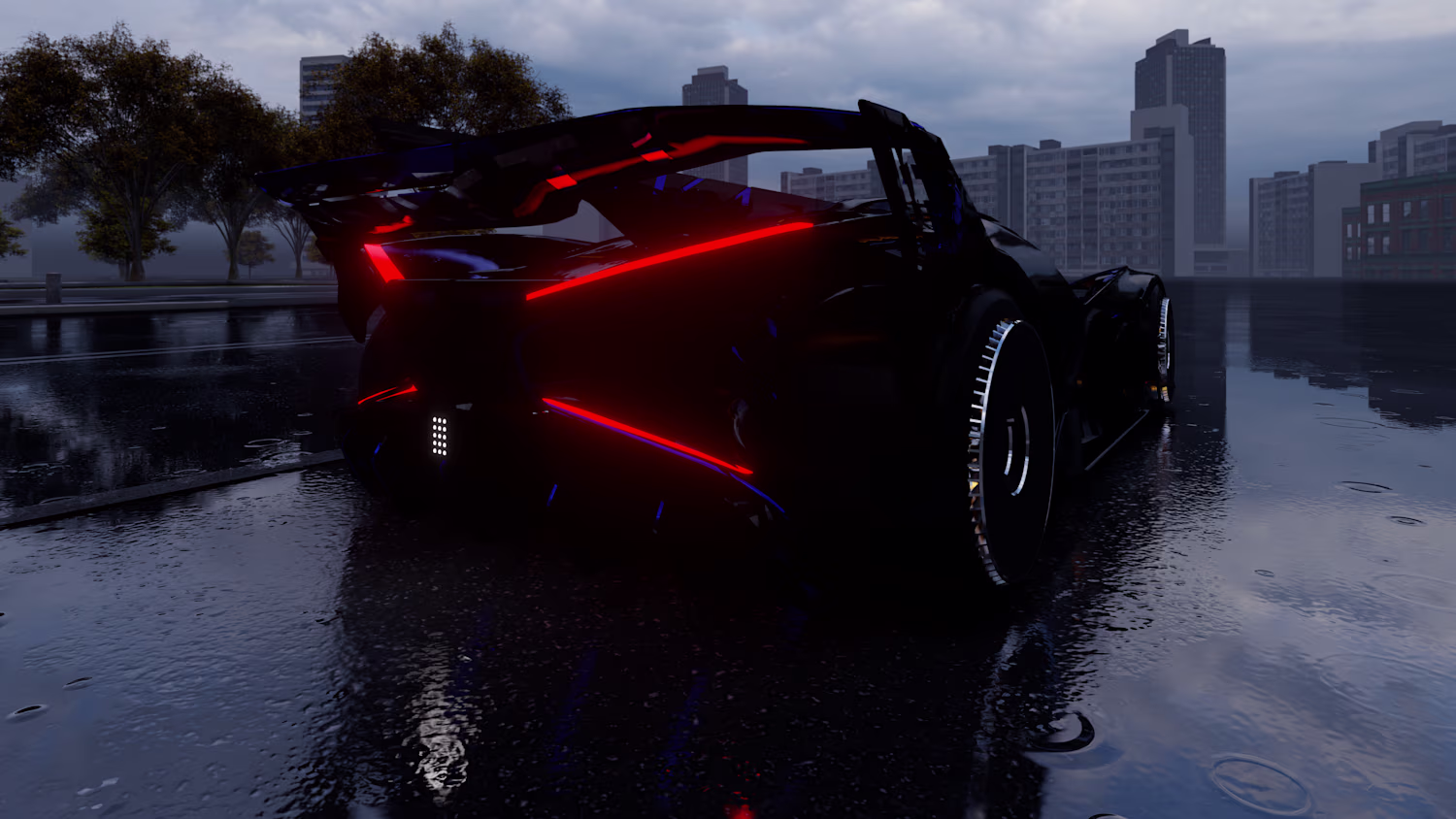 A cinematic 3D visualization of the Bugatti Bolide, created to explore dynamic lighting, atmospheric conditions, and high-contrast automotive presentation. The scenes were rendered using Lumion, with a strong emphasis on night environments, wet surfaces, reflections, and dramatic light behavior to enhance visual impact.