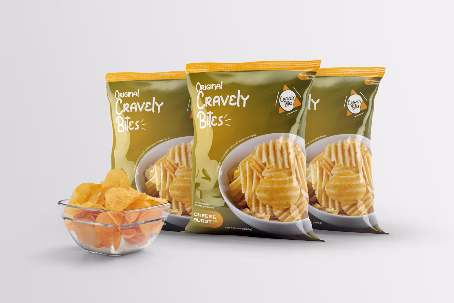 For this packaging, I leaned into a warm, appetizing look — something that instantly says “snack time.” The focus was on: