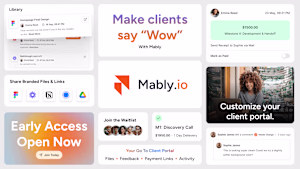 If the work you deliver is great but the way you deliver it tells a different story, that's exactly what Mably is built for. A branded client portal, zero friction, looks like you built it custom for them.