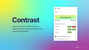 Contrast makes it easy to check the contrast ratios of colors as you work. Select a layer and Contrast will immediately look for the color directly behind your selection and serve up the contrast ratio along with passing and failing levels from the Web Content Accessibility Guidelines (WCAG). If…