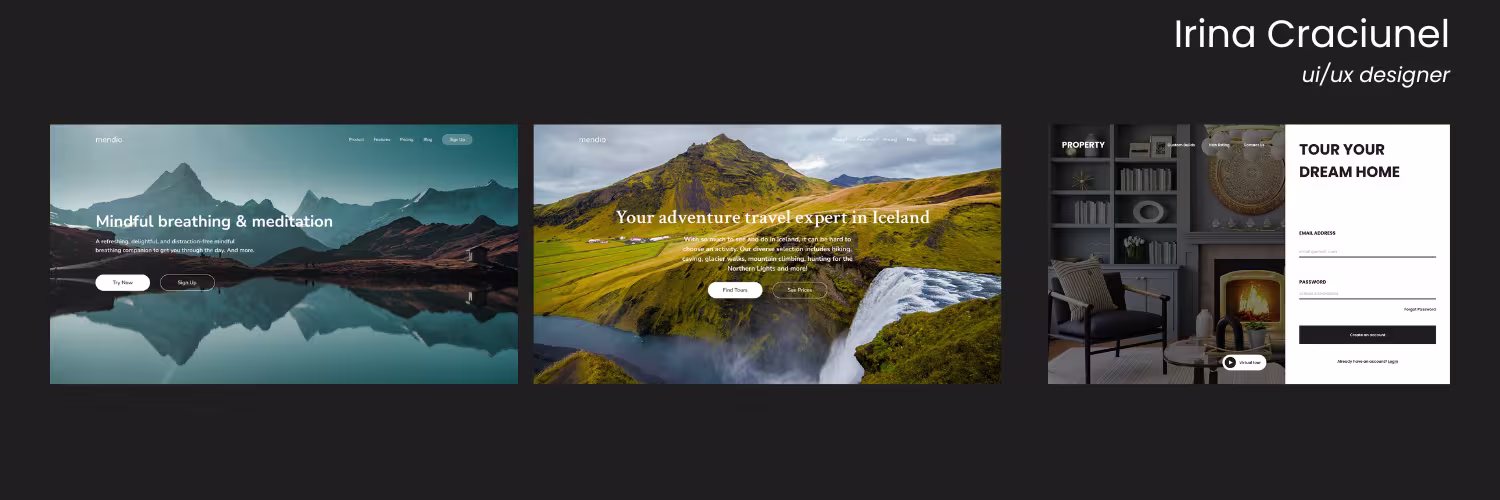 Designed a landing page concept for Mendio, an adventure travel platform based in Iceland. The hero section features dramatic full-screen landscape photography with a bold headline, descriptive copy, and two CTAs Find Tours and See Prices. Clean minimal layout keeps the focus on the destination imagery. Designed in Figma.