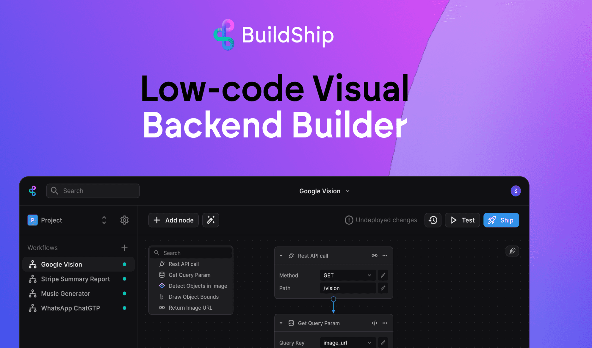 BuildShip is a lowcode visual backend builder that lets you ship APIs, scheduled jobs, backend cloud functions instantly. Powered by AI, create your own workflow nodes, connect to any tool, database and create scalable backend for your apps.