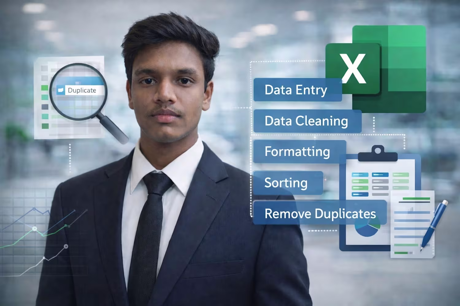 I completed a data entry and data cleaning project where raw data extracted from a PDF file was unstructured and stored in a single column. The dataset included names, phone numbers, email addresses, and locations combined in one field.