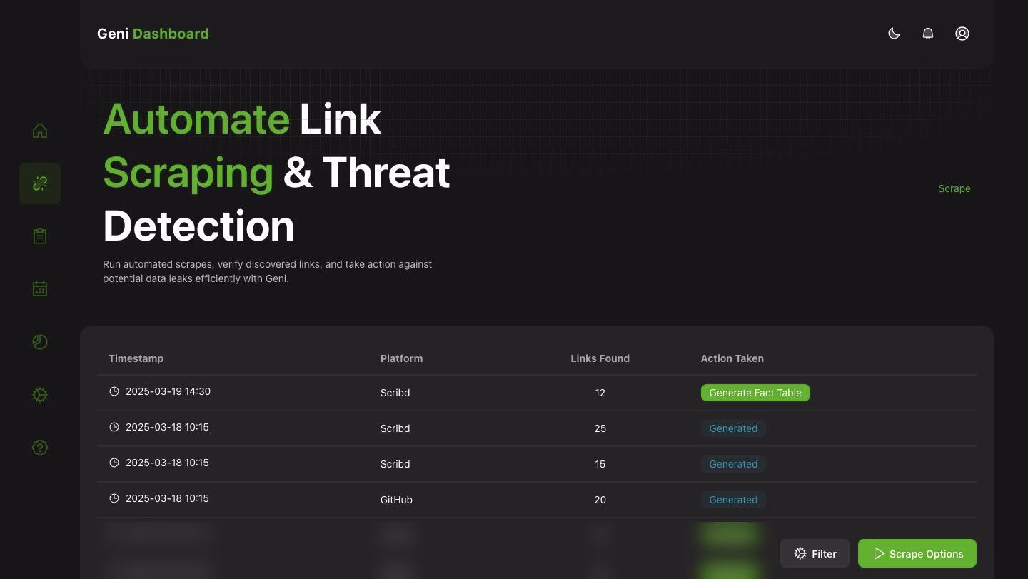 Geni Dashboard: Streamlining Link Scraping & Threat Detection