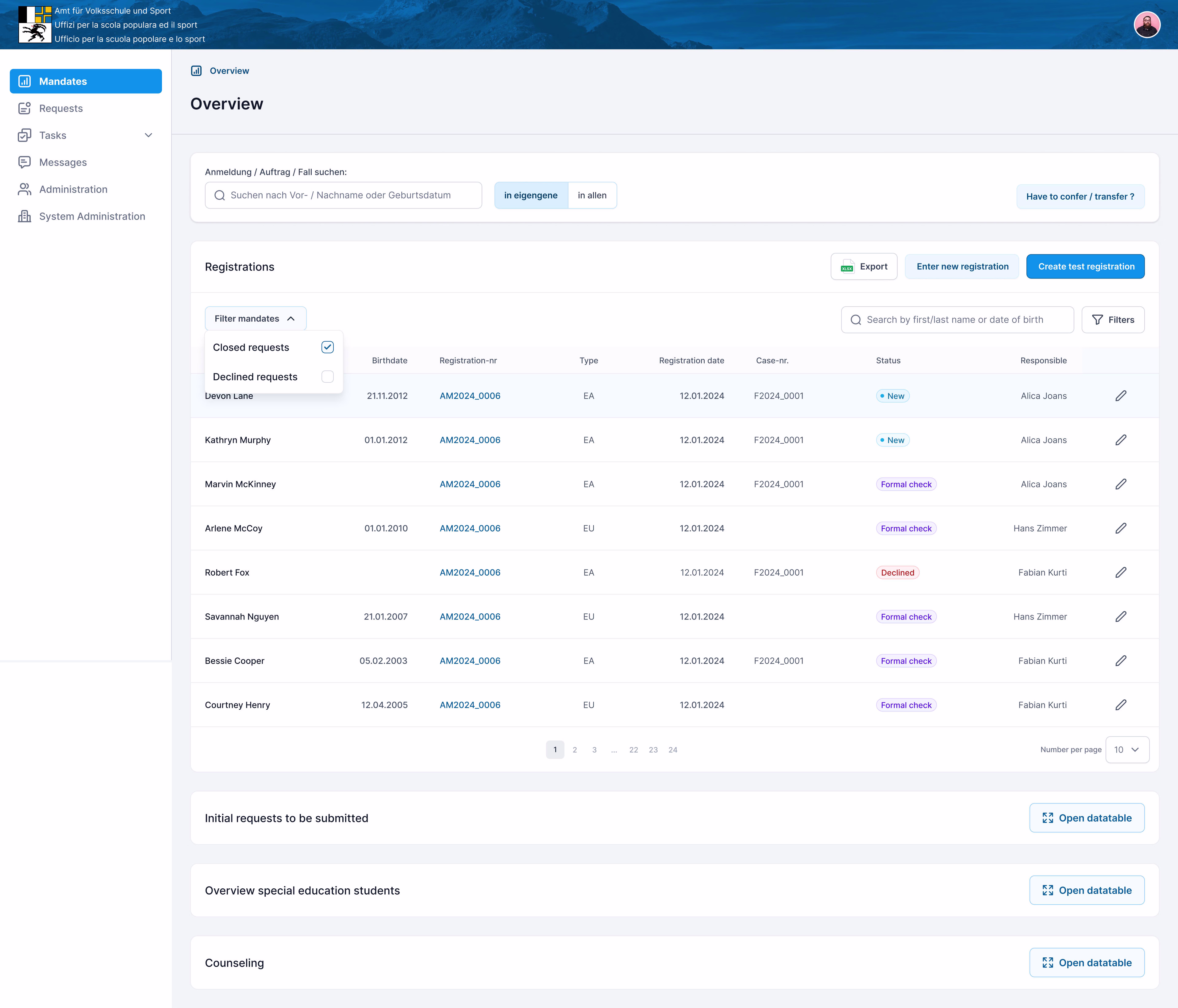 Advisory Landing page