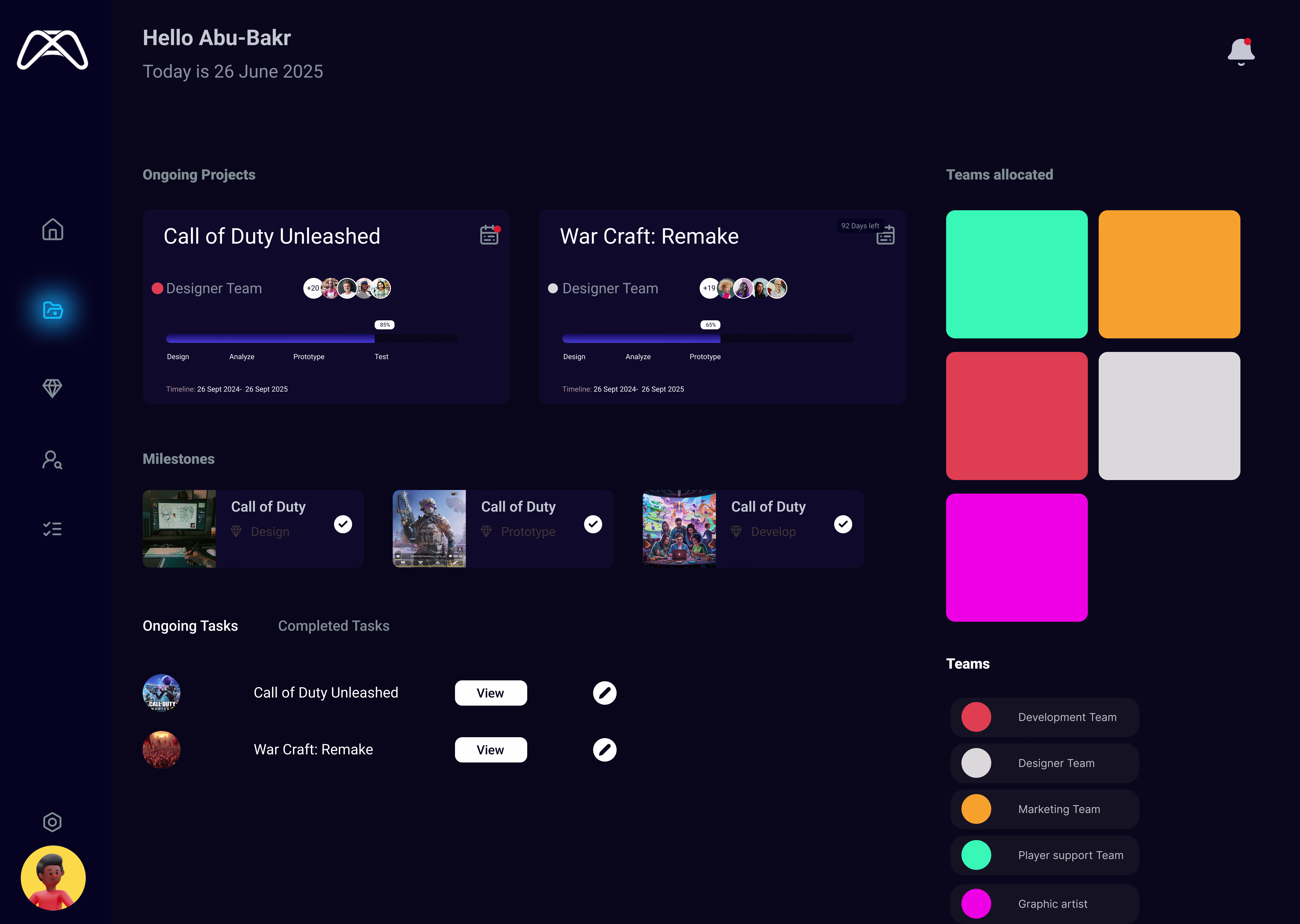 Game company dashboard