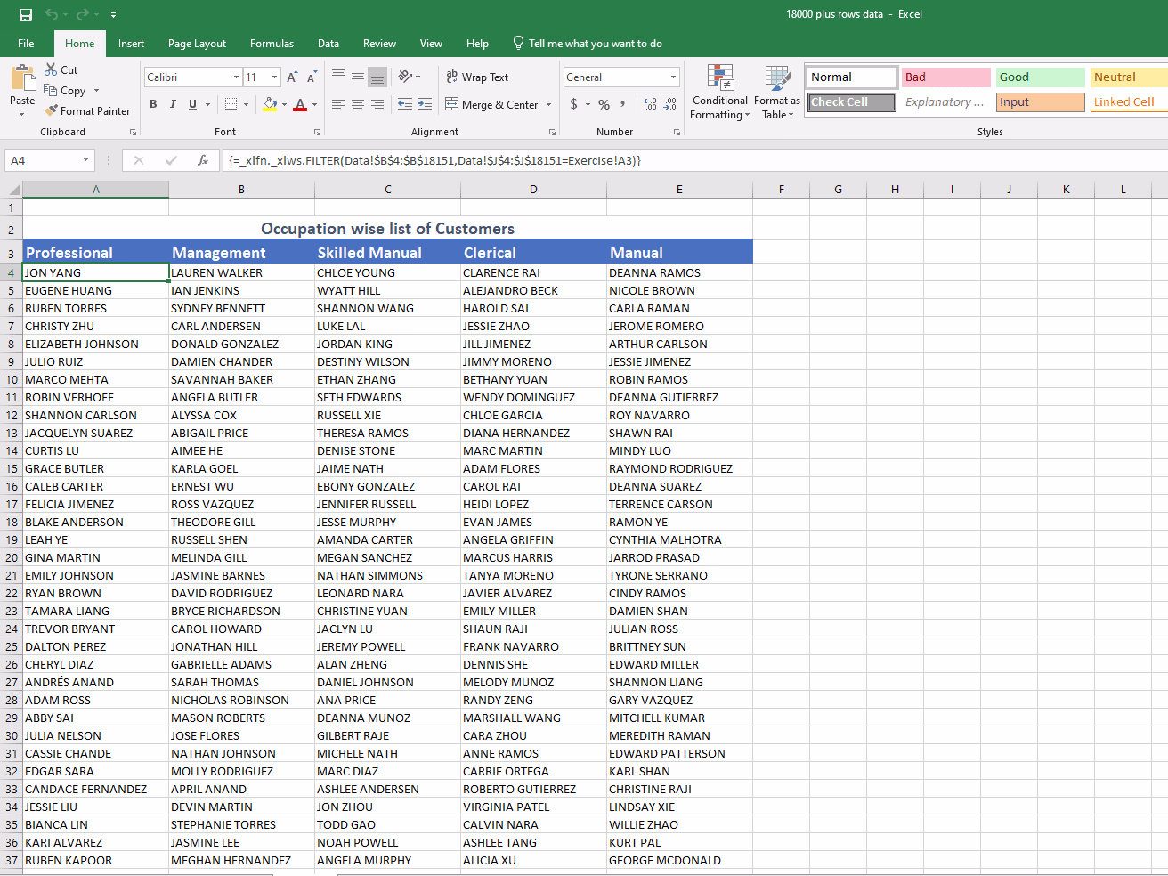 Excel Data Organization