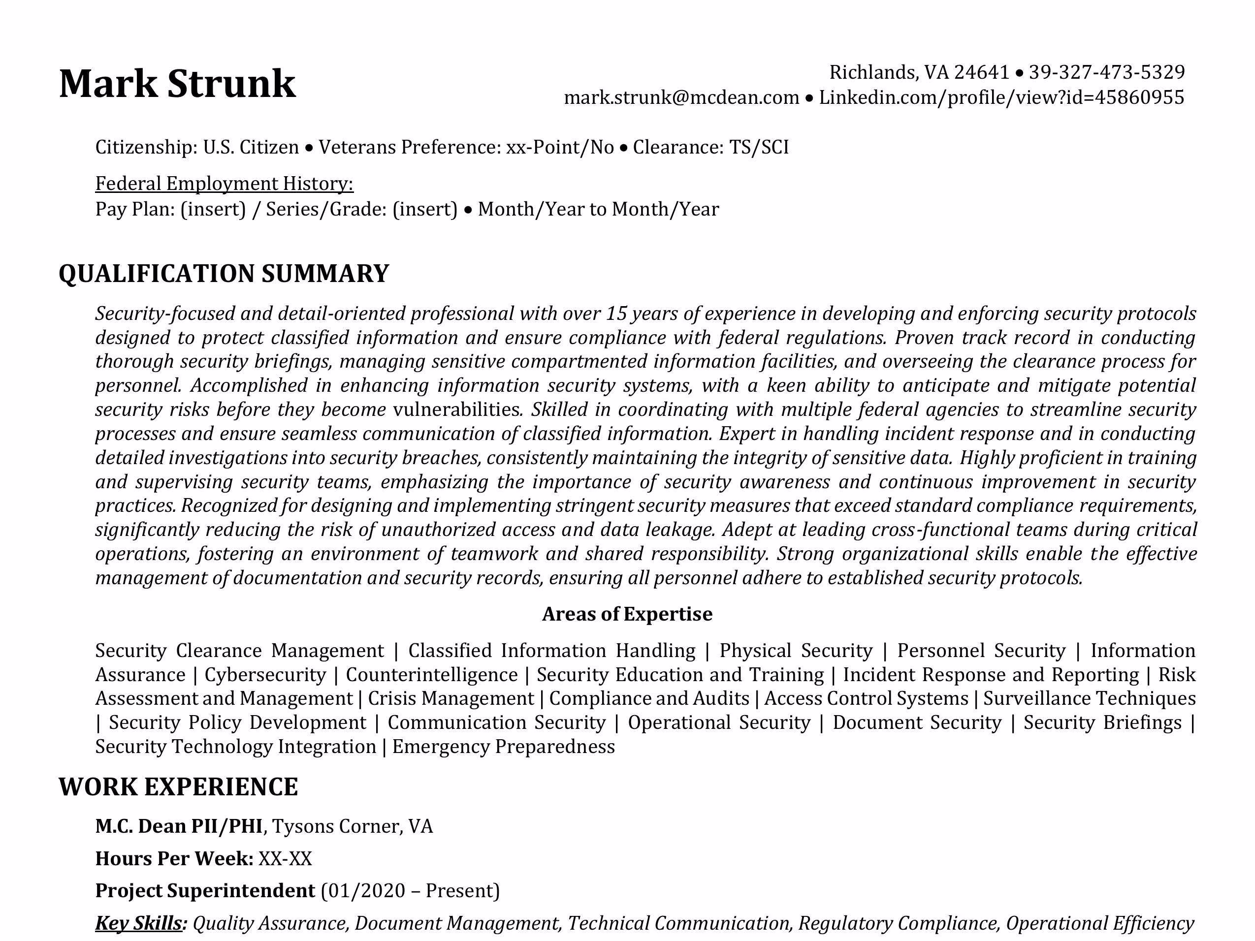 Federal Resume