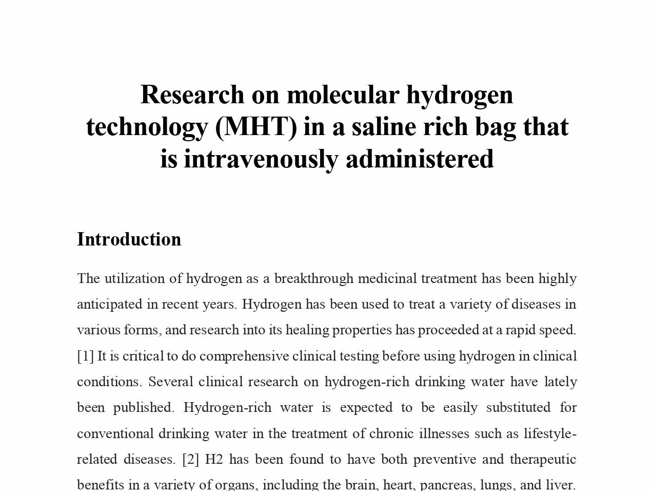 Research on molecular hydrogen technology that is IV administer