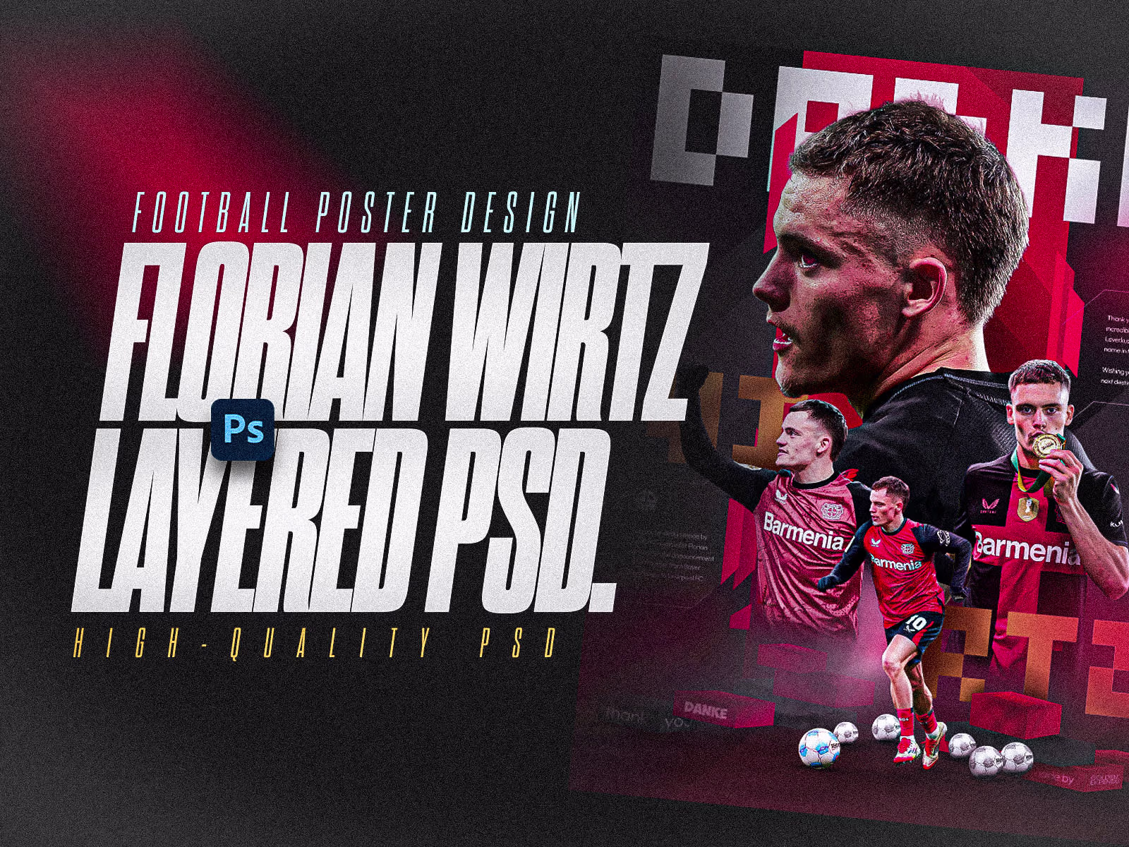 Florian Wirtz Bayer Leverkusen PSD + Layered Poster