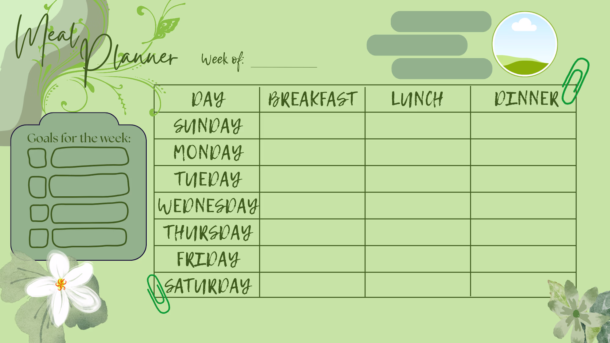 Green Customizable Meal Plan Organizer