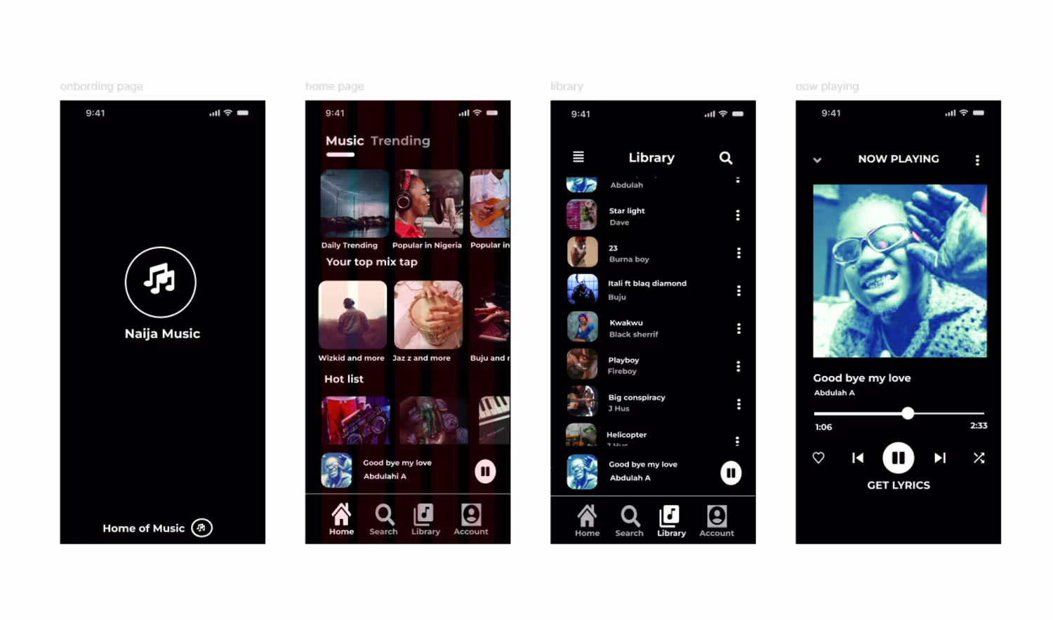 Figma Naija Music Mobile App, with Interaction