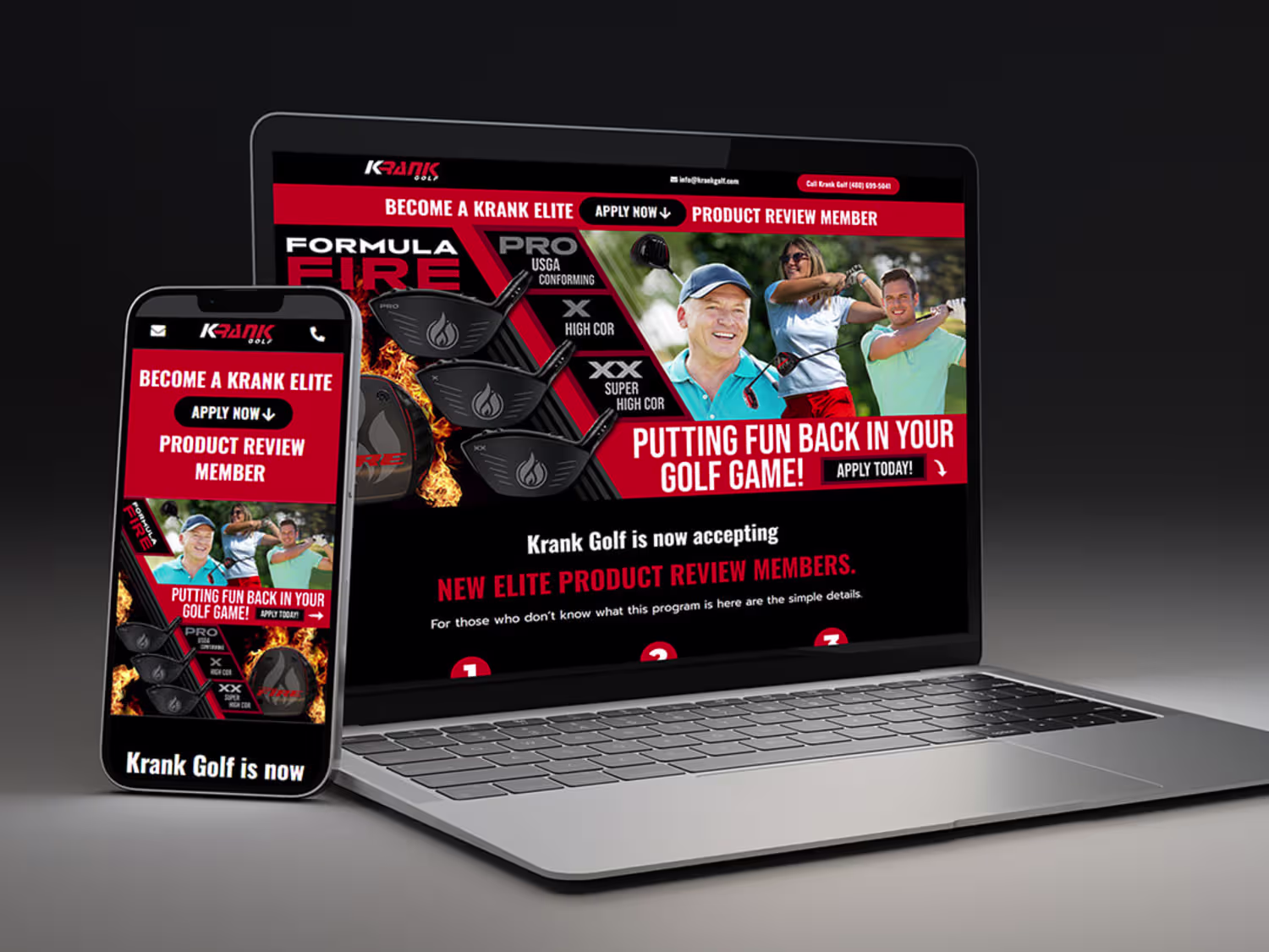 Krank Golf | 2024 | Adv. WordPress, Elementor, UI/UX, & Lead Gen