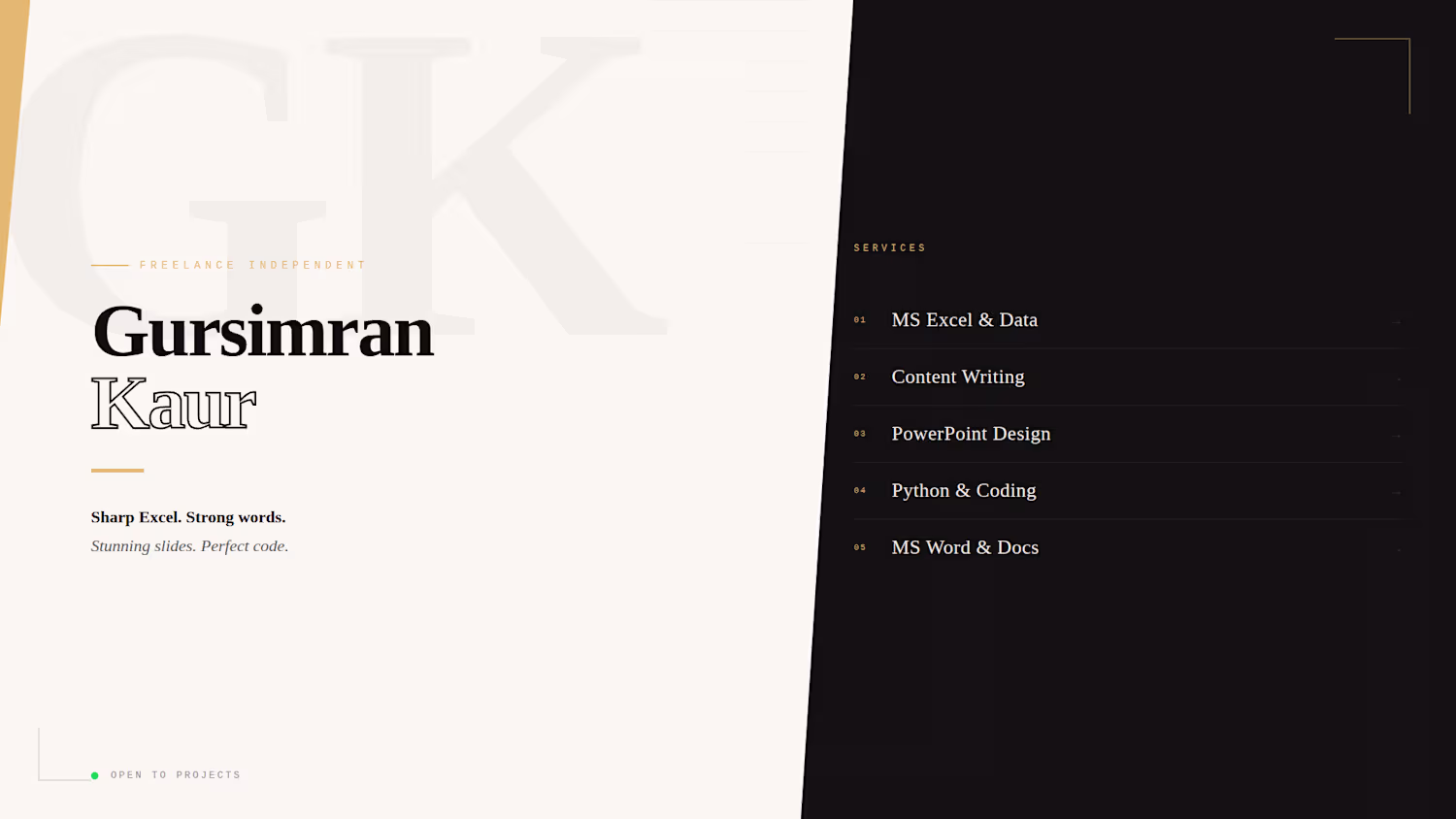Sharp Excel. Strong words. Stunning slides. Perfect code.