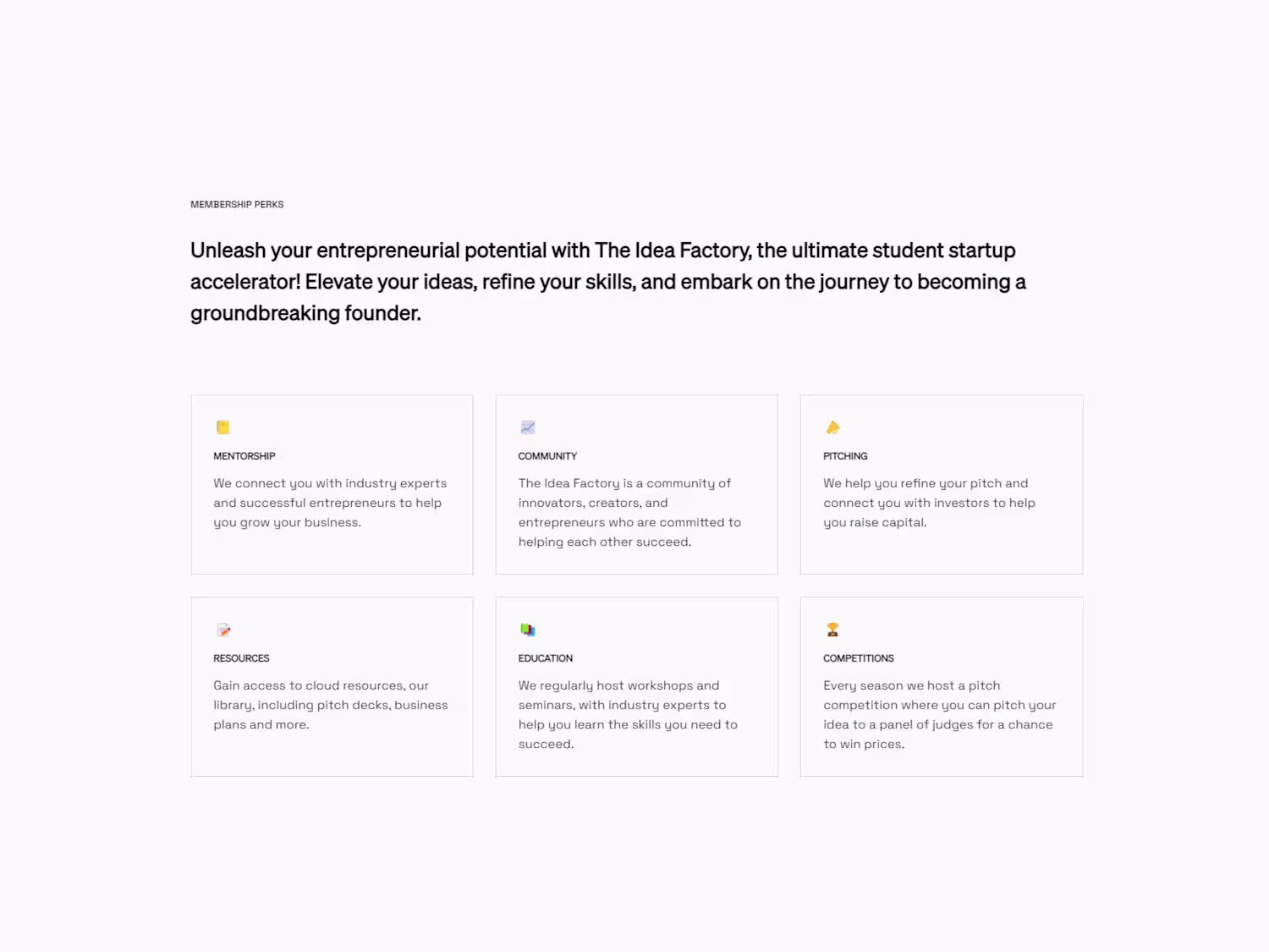 Landing Page for The Idea Factory