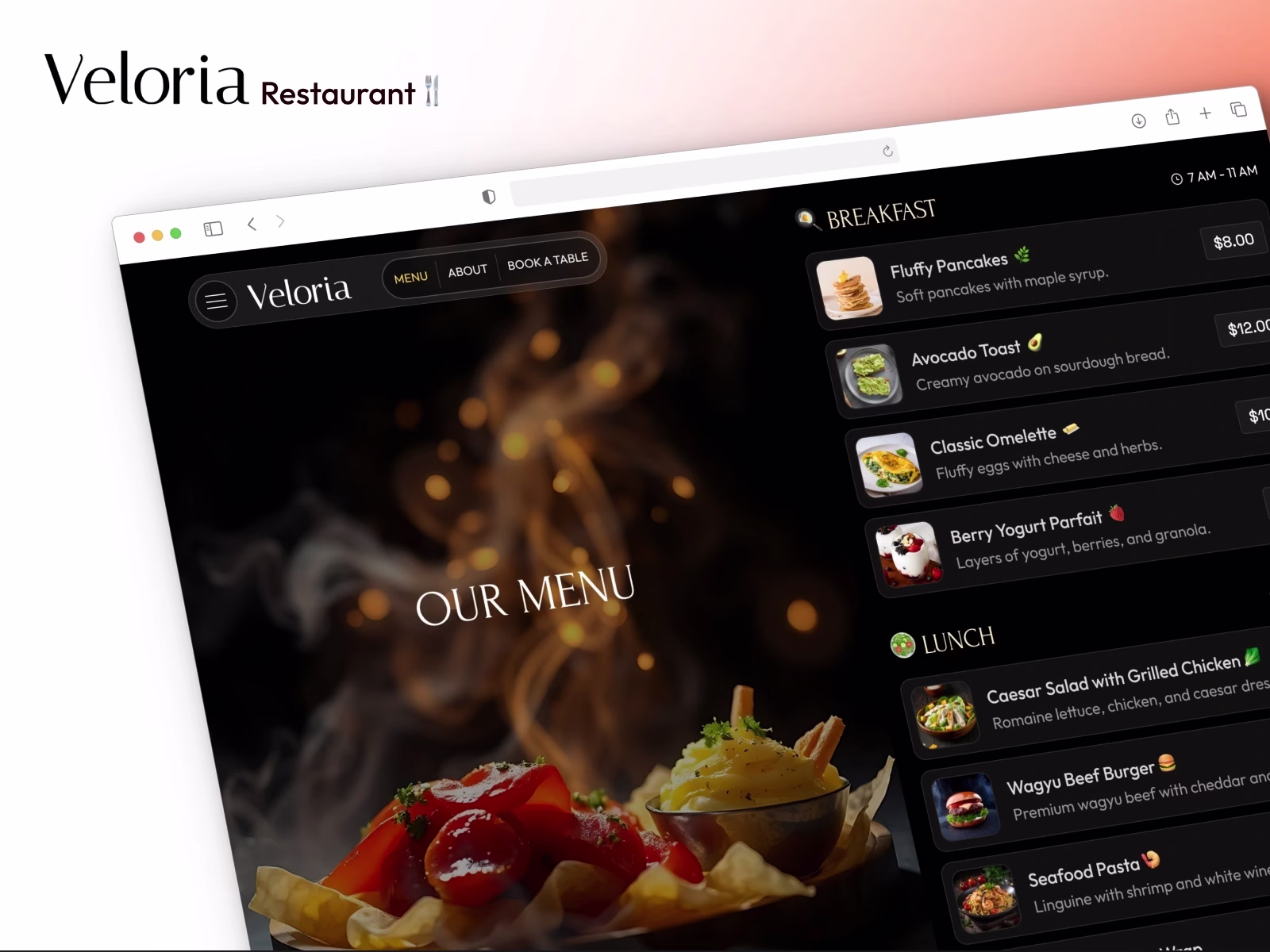 The Veloria Premium Restaurant Framer Website Template