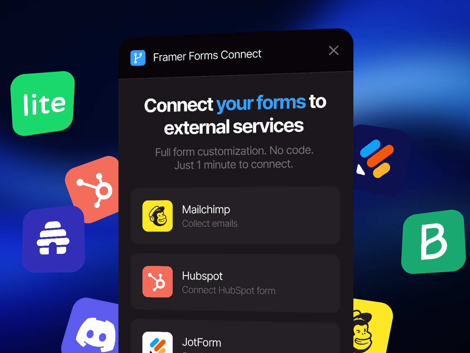 Framer Forms Connect allows to send your custom Framer forms to your favorite tools — without writing a single line of...