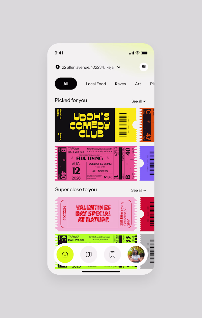 This dashboard design took longer than I expected. Designing each ticket was time-consuming but I loved every bit of it. The idea is for anyone looking for activities in Lagos to find them with ease.