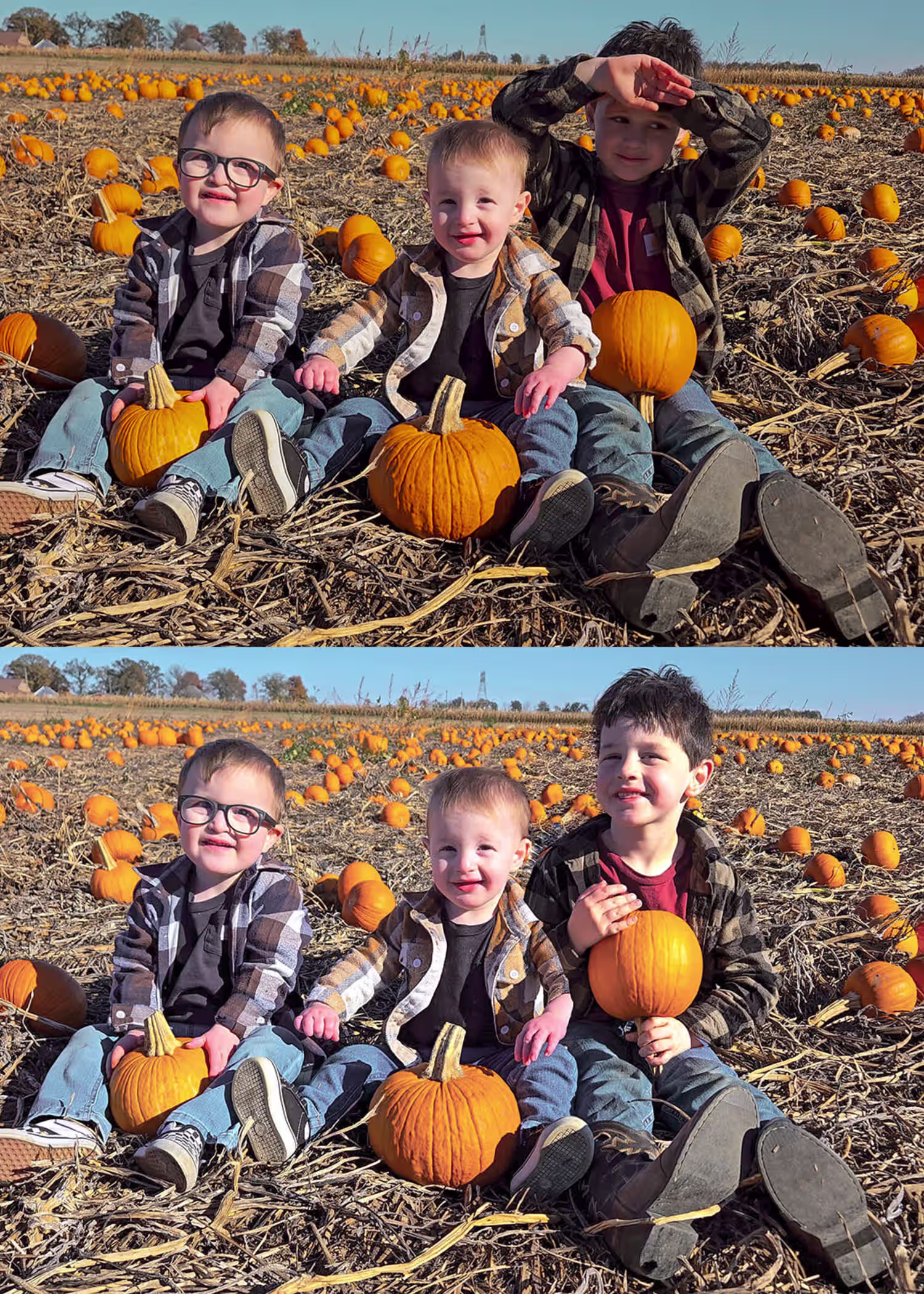 I took multiple images and with the use of blending, masking, and lighting created one image where everyone is smiling pretty for the camera