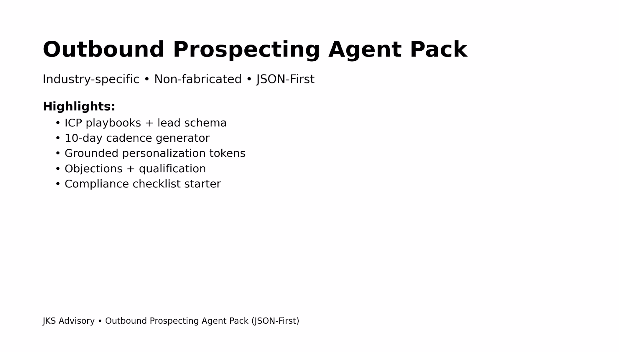 Outbound Prospecting Agent Pack (Industry-Specific) — JSON-First