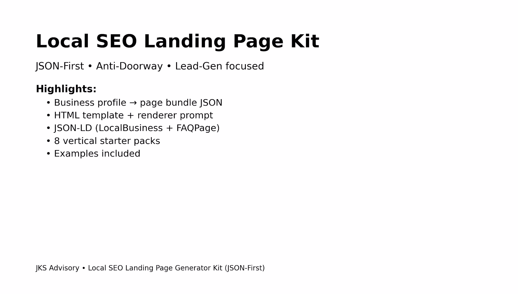 Local SEO Landing Page Generator: JSON‑1st(Anti‑Doorway, Non‑Hal