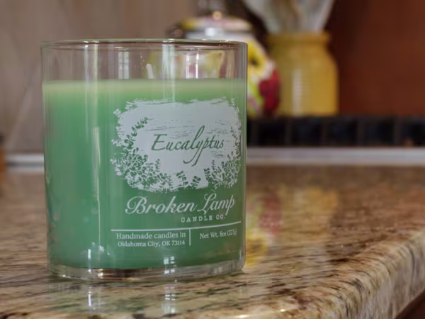 Elevating the artisanal feel of Broken Lamp Candle Co. through a one-tone label design that uses negative space to let the color of the wax complete the artwork.