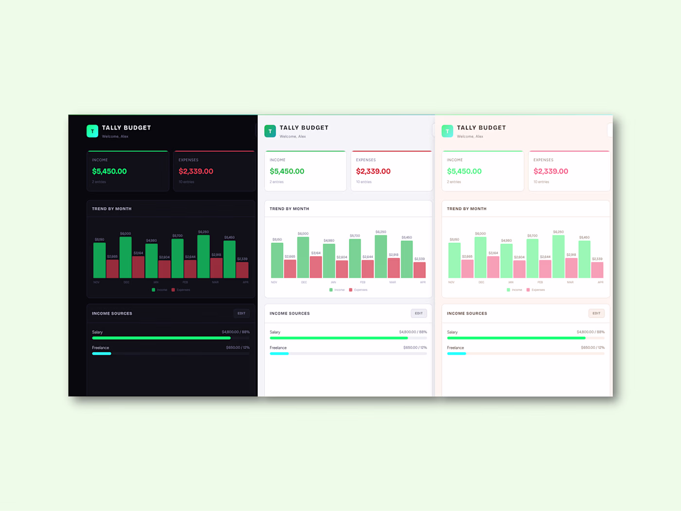 Offline Budget Tracker | Interactive Web Page, 3 Color Schemes