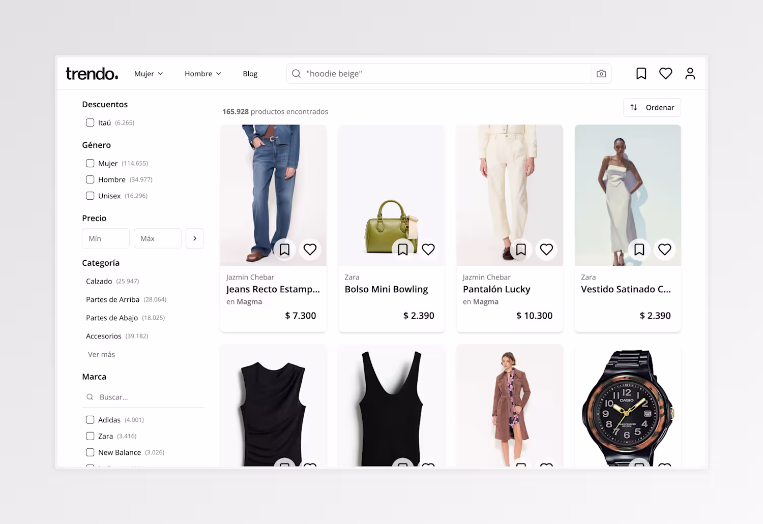 I designed and built Trendo (https://trendo.uy), a vertical fashion search engine that centralizes products from 450+ Uruguay stores. Users can search by text or image, compare options, and jump directly to each store to buy. I also built the first version of our affiliate system for brands and creators.