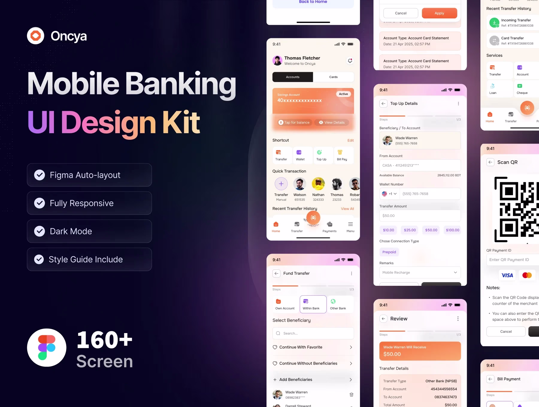 Oncya – Fintech Mobile Banking UI Kit