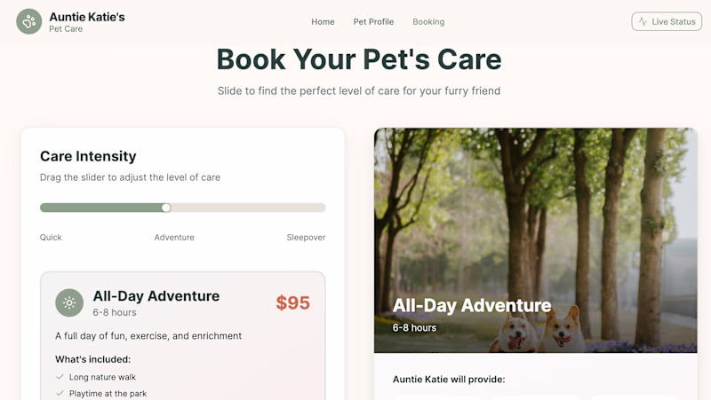 Project Title: Auntie Katie’s Pet Care: The Care Intensity Experience