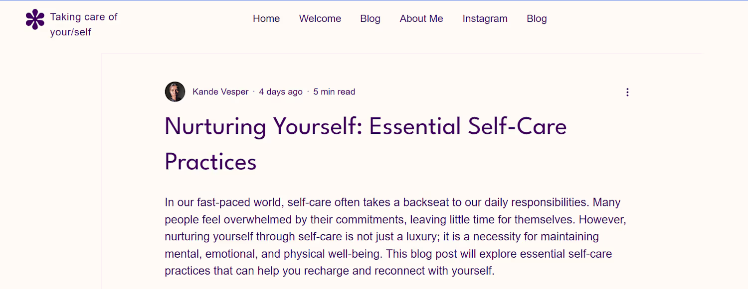 First time making a Blog & constructing articles through Wix https://bbykande.wixsite.com/taking-care-of-your