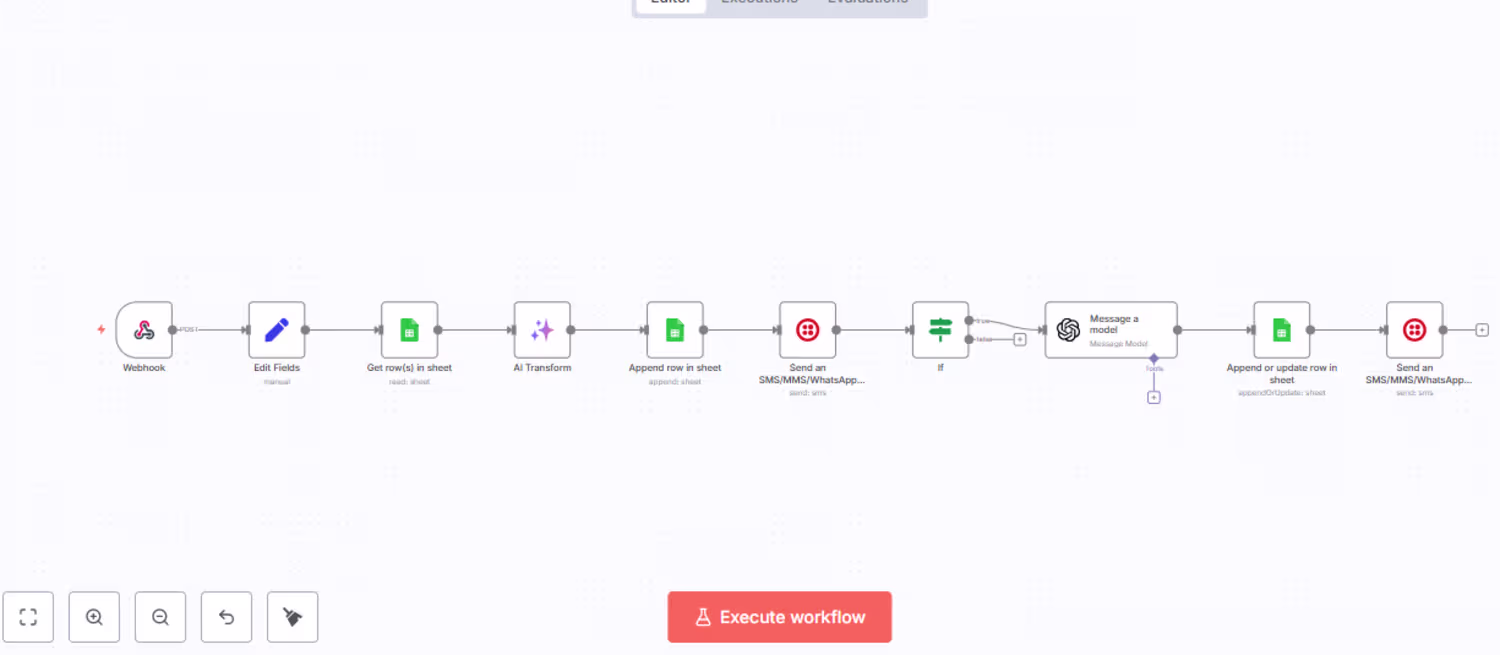 Developed a fully automated WhatsApp Business chatbot using n8n workflows.