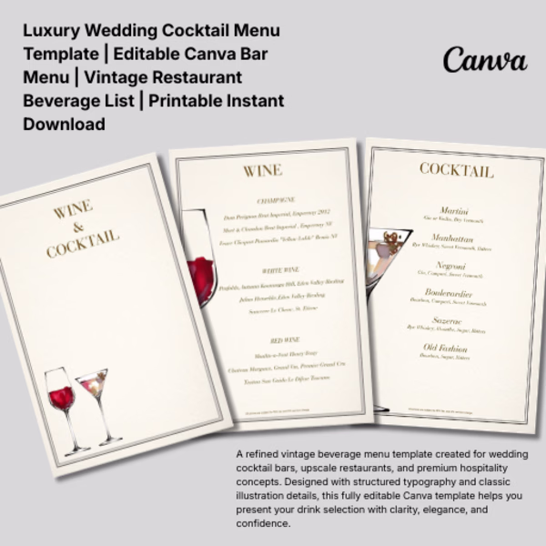 Classic & Elegant Beverage Menu Design for Bars, Restaurants