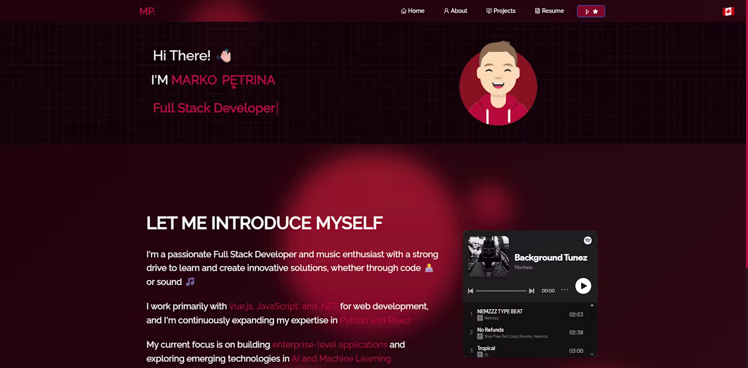 This is my personal portfolio website, available in both English and Croatian, designed to showcase my skills, projects, and professional background as a web developer. The site highlights my experience across frontend and full-stack development, with a focus on clean UI, performance, and maintainable code, while giving employers a clear picture of who I am, how I work, and the technologies I use.