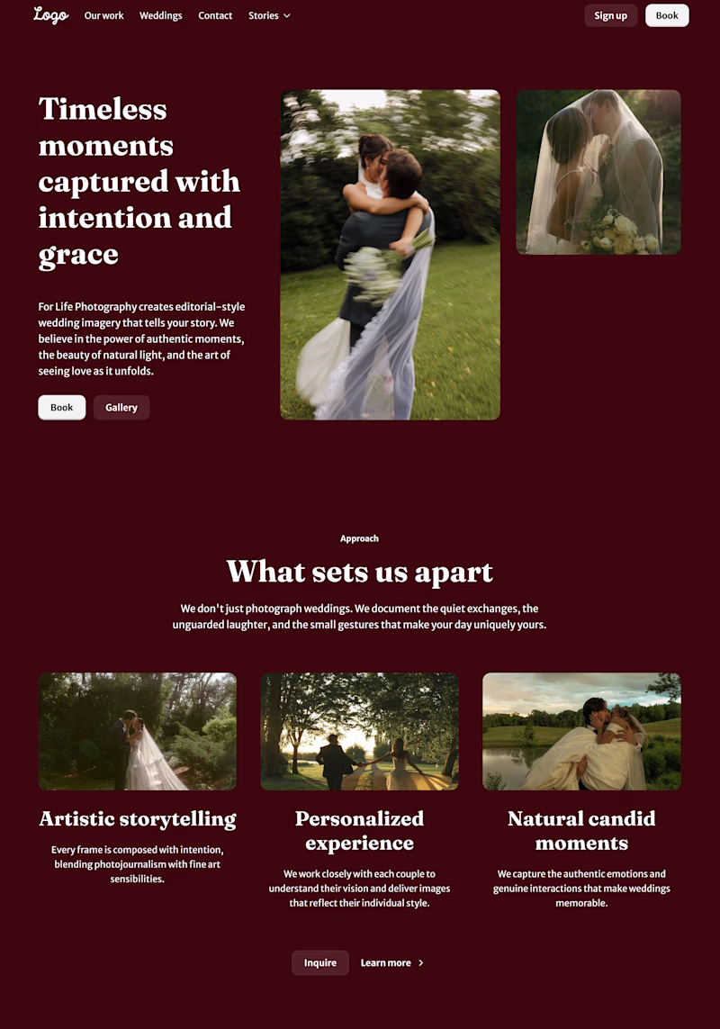 Working on a photography website mockup and wondering which do people prefer: the hero being in a different color, or keeping it all one color.