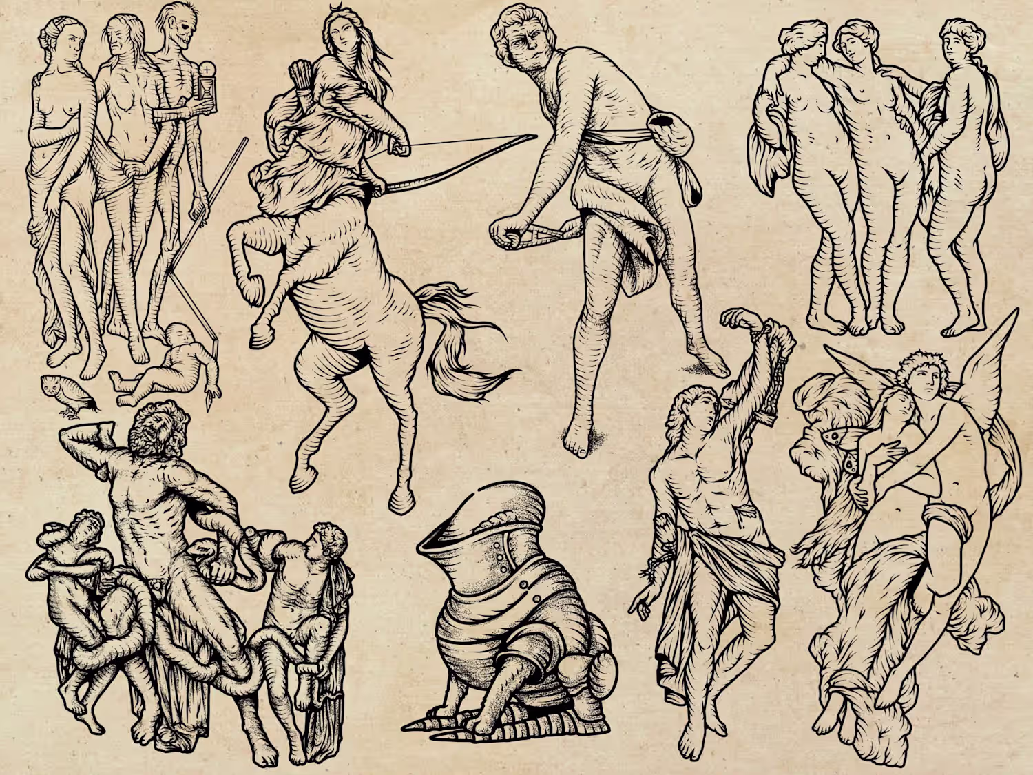 Tattoo Designs with Engraving Aesthetic