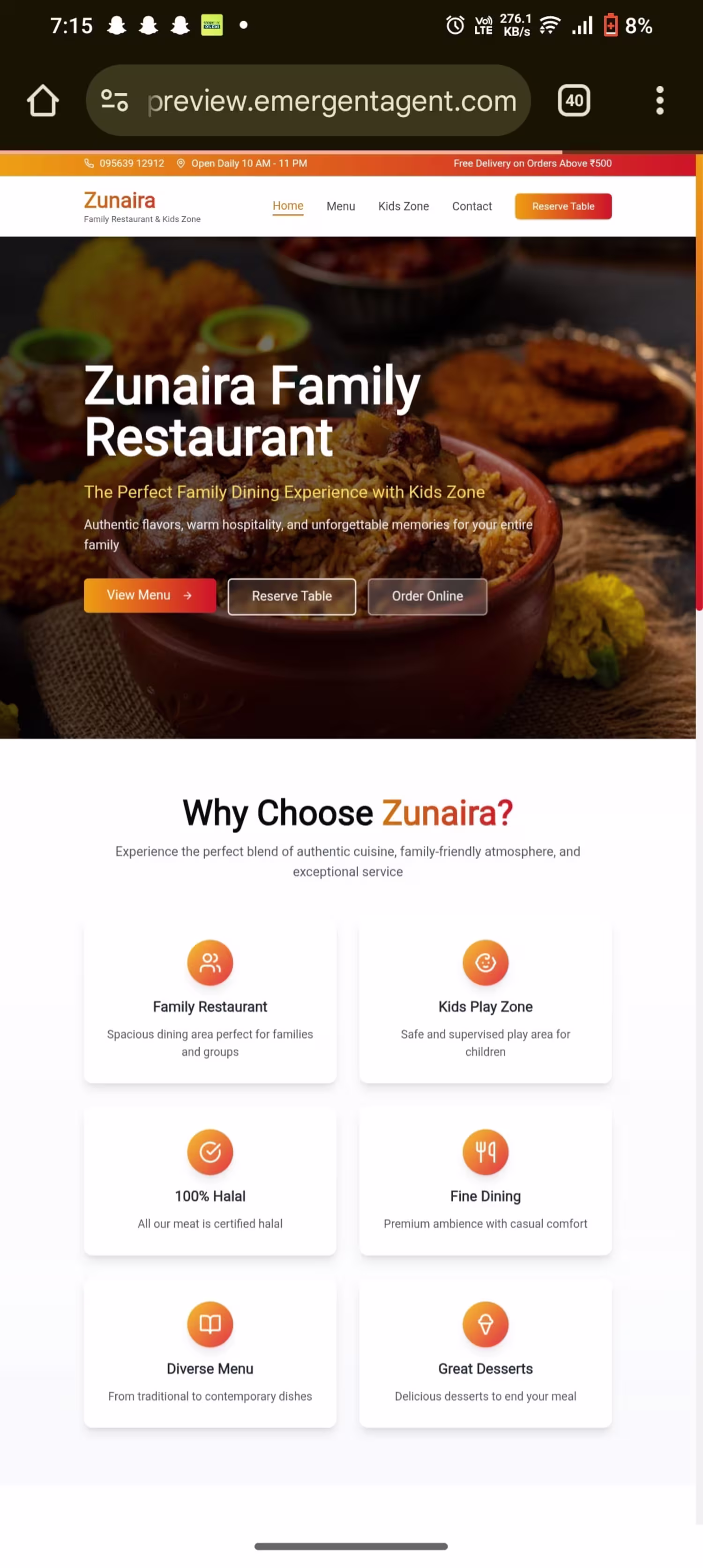 I have maked website for a restaurant