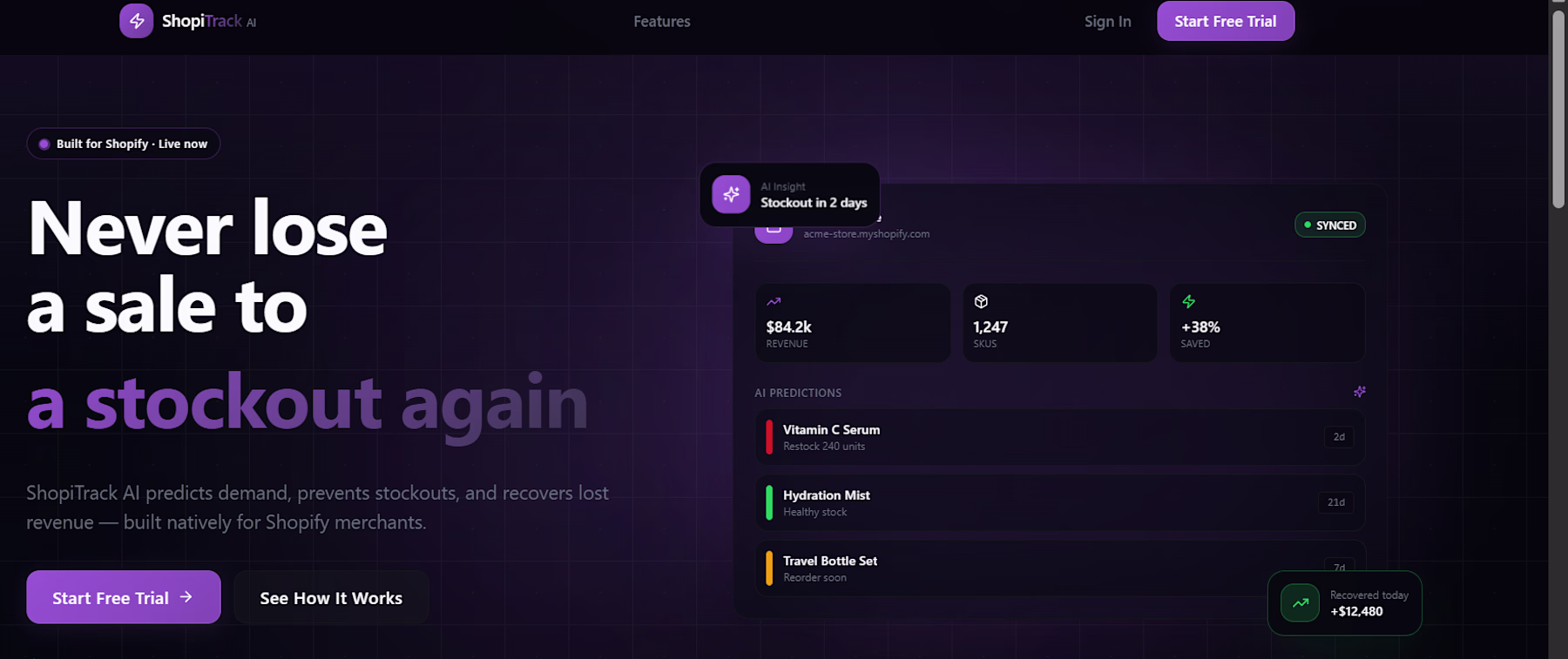 Production ready Shopify Inventory Tracker. Shopi Track AI