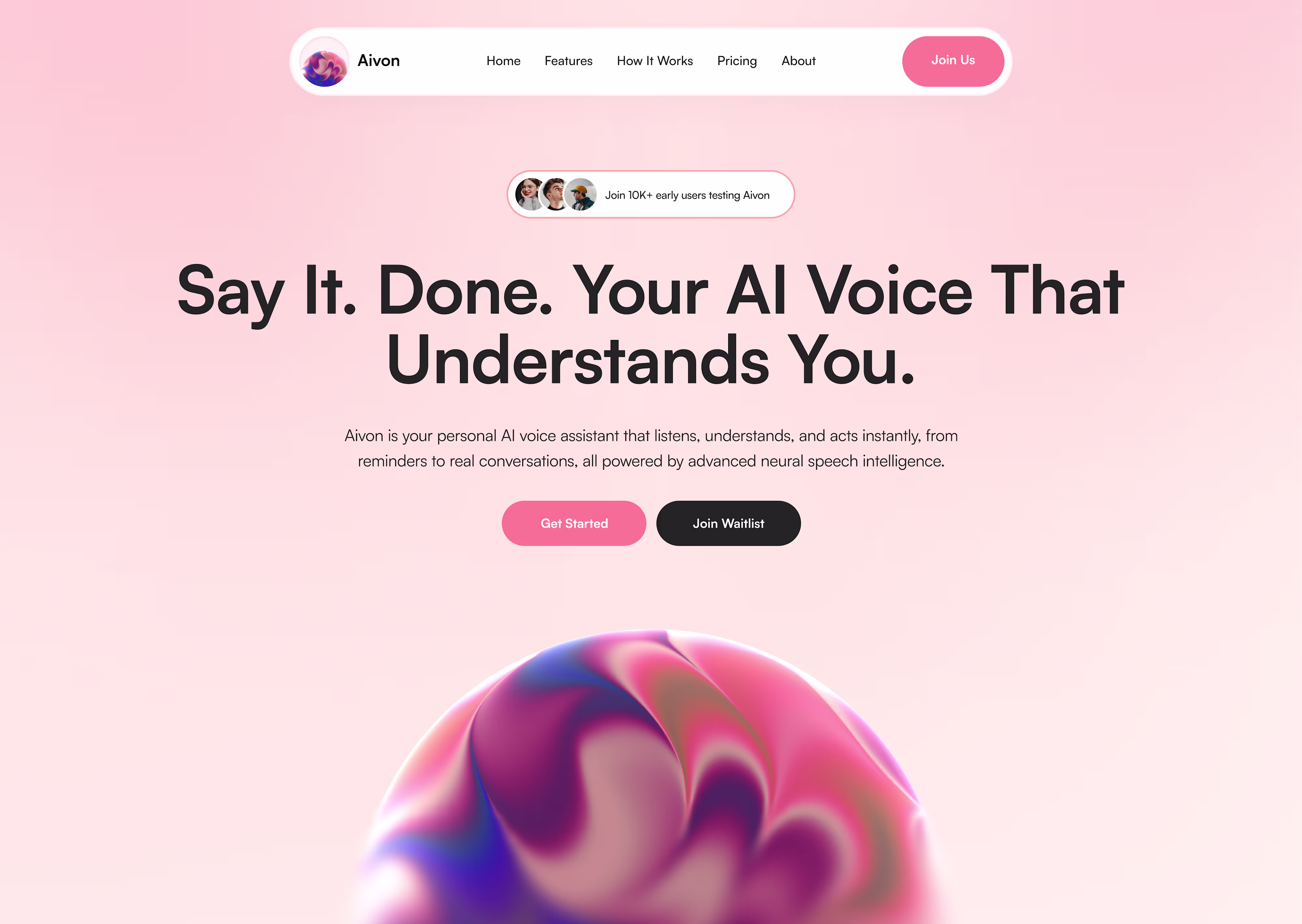 AIVON – AI Voice Assistant SaaS Landing Page Design