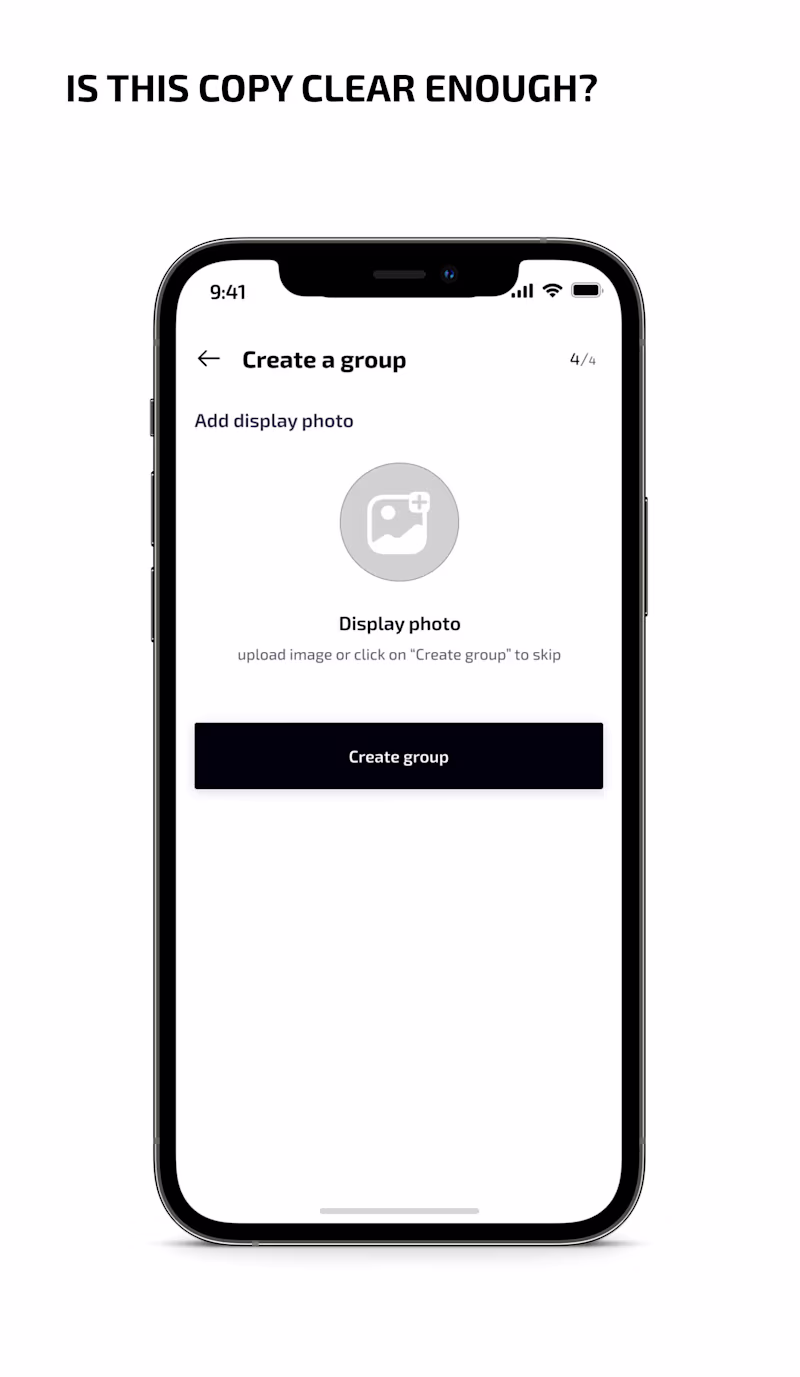 During this group creation flow, the user can skip adding a display photo.